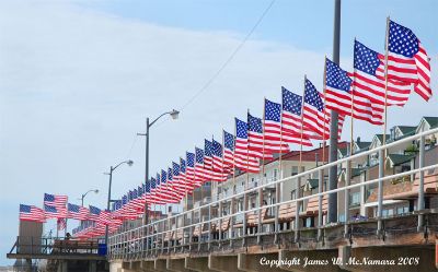 I looked out my balcony door on 9-11-08 and saw this flag display on the Boardwalk, right outside my building. I suspect it was done because one of the memorial benches on the Boardwalk is in memory of someone killed in the 9-11-01 attack and this was done to honor that person.