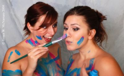 Kimberly Marvel and London Andrews goofing around with paint and looking adorable.