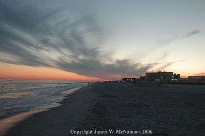 Sunset over the beach and Boardwalk, Long Beach, NY (August 2006)