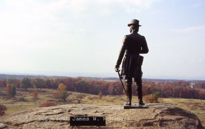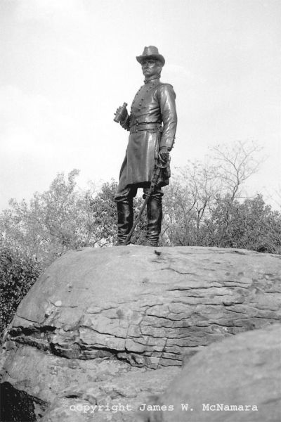 Front view of General Gouverner K. Warren Monument on Little Round Top