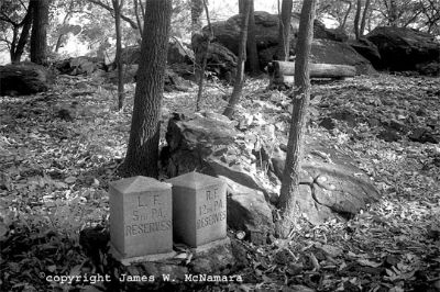 Summit of Round Top, showing position markers for two regiments of the Pennsylvania Reserves